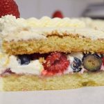 Add your raspberries and blueberries on top alternating between the two until your whole cake is covered